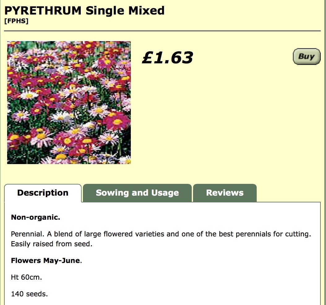 Pyrethrum seeds from Organic Gardening Catalogue