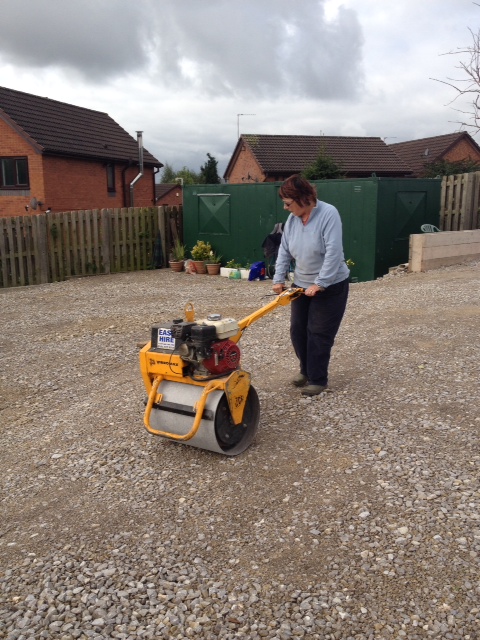 - We hired a Bomag 55 pedestrian petrol Roller for one day (£55 + vat + £7.50 each way delivery from Easy Hire Stockport 0161 477-9315 – credit card details and 2 forms of ID with a home address on them were needed. Next day delivery service, instructions on its use was given on site. It was reasonably easy to use once you got the hang of it, 2 women did the work. The machine broke down twice, but Easy Hire sent out an engineer very quickly and gave us an extra day to use the roller.